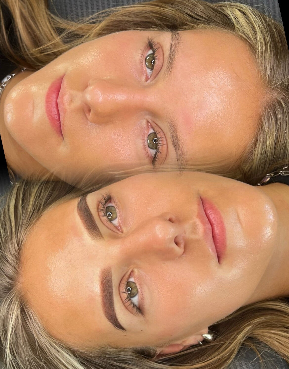 Bij deze techniek wordt de bovenkant van de wenkbrauwen 'fluffy' gemaakt. De onderkant is, zoals je ziet, super strak ingezet, maar aan de bovenkant verloopt de wenkbrauw luchtig. Dit geeft dat mooie zachte en poederachtige effect. Deze techniek is ideaal als je houd van niet te strakke, natuurlijke wenkbrauwen en als je bijvoorbeeld vaak je haartjes omhoog borstelt of een brow lamination laat doen. De voorkant houden wij altijd lichter (ombré) tenzij de klant anders verzoekt.